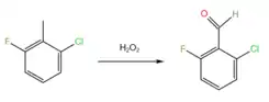 2-Chloro-6-fluorobenzaldehyde is prepared by oxidation of 2-chloro-6-fluorotolulene by hydrogen peroxide in solution.[3]