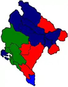 After the elections the ruling DPS-SDP coalition remained in power in Bar, Bijelo Polje, Danilovgrad, Plav and Rožaje municipalities. The major opposition coalition Together for Change (SNP-SNS-NS) formed majority in Mojkovac, Berane, Žabljak, Plužine, Šavnik, Pljevlja, Andrijevica and Kolašin, while in Nikšić, Tivat, Kotor, Cetinje and Budva they formed a post-election coalition with Liberal Alliance of Montenegro to form municipal governments.[1][2]