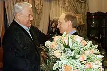 On New Year's Eve 1999, Yeltsin announced that he would be resigning early in the belief that “Russia should enter the new millennium with new politicians, new faces, new people, who are intelligent, strong and energetic, while we, those who have been in power for many years, must leave.”[3] In accordance with the constitution, Putin became acting president.