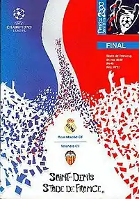 The 2000 UEFA Champions League Final was a football match that took place on 24 May 2000. The match was played at Stade de France in Saint-Denis, France, to determine the winner of the 1999–2000 UEFA Champions League. The final pitted Spanish teams Real Madrid and Valencia. It was the first time in the Champions League or the European Cup that two clubs from the same country competed in the final.