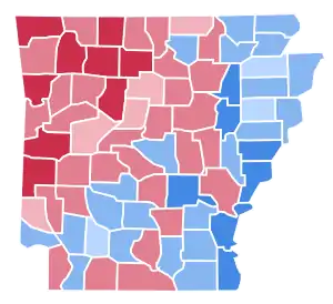 | Arkansas | 52.62% | 3,353 | 45.15% | 2,877 | 2.23% | 142 | 6,372 |