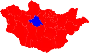 ![]() Aimags majority won by MPRP (red), DP (blue) | |||||||||||||||||