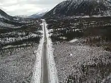 The Trans-Alaska Pipeline System crosses the rupture trace; the pipeline suffered some minor damage to supports. There was no oil spillage, as the pipeline at that location was designed to move laterally along beams to withstand major movement on the Denali Fault.[12] The pipeline was shut down for three days to allow for inspections but was then reopened.