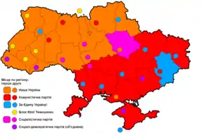 - At the moment of the election the party temporally had name "Our Ukraine". Do not confuse with created in 2005 party Our Ukraine