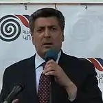 15 people announced that they would stand in election, but in the end 9 candidates stood in the first round of the presidential election.[5] Reporting in the media was seen as being one-sided, with a media monitoring organisation saying that President Kocharyan received about five times as much coverage during the campaign as all the other eight candidates combined.[6] Kocharyan campaigned on the record of economic growth during his presidency and got support from several political parties, while his campaign was run by the defence minister Serzh Sargsyan.[7] Kocharyan's leading opponent was Stepan Demirchyan, the leader of the People's Party of Armenia and the son of Karen Demirchyan, a former Soviet leader of Armenia and speaker of the Armenian parliament who had been assassinated in 1999.[6][7] Demirchyan ran in the election as an anti-corruption candidate.[8] The other leading candidate was Artashes Geghamyan a former mayor of Yerevan, from the National Unity party.[7]