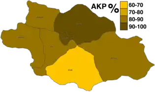 | Justice and Development Party | 55,203 | 84.82 | 3 | +2 | |