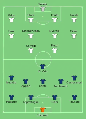 The 2004 Coppa Italia Final was the final of the 2003–04 Coppa Italia, the 57th season of the top cup competition in Italian football. The match was played over two legs between Lazio and Juventus. This was the 13th Coppa Italia final appearance by Juventus and the 5th by Lazio. It was the first meeting of these two clubs in the finals. The first leg was played in Rome on 17 March 2004, in which Lazio won 2–0. The second leg was played on 12 May 2004 in Turin and the two clubs drew 2–2, giving Lazio their 4th title on an aggregate result of 4–2.
