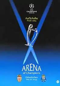 The 2004 UEFA Champions League Final was an association football match played on 26 May 2004 to decide the winner of the 2003–04 UEFA Champions League. AS Monaco, a Monaco-based club representing the French Football Federation, faced Portuguese side Porto at the Arena AufSchalke in Gelsenkirchen, Germany. Porto won the match 3–0, with Carlos Alberto, Deco and Dmitri Alenichev scoring the goals. Deco was named Man of the Match.