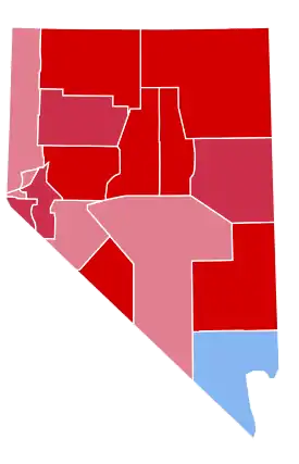 However, Bush performed strongly in Nevada's Cow Counties (its 14 counties apart from Clark, Washoe, and Carson City[6]), winning over 60% of the vote in Douglas and Lyon Counties, over 70% in Churchill County, and over 75% in Elko County (where he received the highest vote share of any nominee since William Jennings Bryan in 1896). He also did well in Nye County, another of the larger Cow Counties, getting 58.5%, an improvement of 1.8% over four years prior. And he managed to keep Clark County from being a blowout, holding Kerry to a 4.9% margin there. Together with his limiting his backslide in Washoe, this was enough to give Bush another win in the Silver State. As of 2020, this is the last time that either Washoe County or Nevada has voted Republican, although it was close in both 2016 and 2020, while voting to the right of the nation for the first time that year since 2004 also.