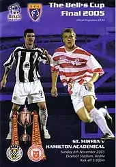 The 2005 Scottish Challenge Cup Final, also known as the Bell's Cup Final for sponsorship reasons, was an association football match between St Mirren and Hamilton Academical on 6 November 2005 at Excelsior Stadium in Airdrie.[1] It was the 15th final of the Scottish Challenge Cup since it was first organised in 1990 to celebrate the centenary of the Scottish Football League.