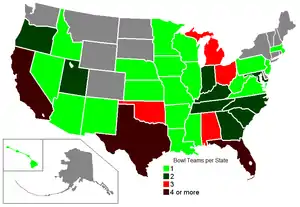 ![]() Bowl sites by state | |||||||||||||||||||||||||||||||||||||||||||||||||||||||||