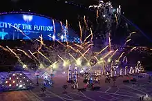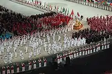 The 2006 Asian Games opening ceremony was held on 1 December at the multi-purpose Khalifa International Stadium.[1] The Opening Ceremony was described by the media to be one of the most breath-taking and technologically spectacular multi-sports event ceremony, and the most expensive multi-sports event ceremony (including both Opening and Closing ceremonies) in the history of Asian Games at that time.[2] It was created and produced by David Atkins who conducted the 2000 Summer Olympics opener[3] and was filmed and broadcast live by International Games Broadcast Services' (IGBS) precursor Doha Asian Games Broadcast Services (DAGBS).[4][5] 10 composers from Qatar, Lebanon, Egypt, Singapore, Japan, India, South Korea, Germany and Australia made the musical scores of the ceremonies.