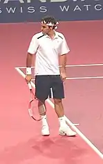 Federer entered his hometown tournament, the Swiss Indoors held in Basel, having never won it despite having reached the final in 2000 and 2001. Federer won a final-set tiebreaker against Paradorn Srichaphan in the semifinals, to advance to the final where he defeated González, 6–3, 6–2, 7–6(7–3). This victory was especially touching for Federer who had grown up in Basel and had been a ball boy at the tournament during his youth.[9]