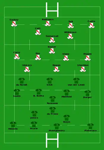 England and South Africa, who won their semi-finals against France and Argentina respectively, had met during the pool stage of the competition, when South Africa won 36–0.[1] South Africa began the final undefeated in the competition. The final was refereed by Irish referee Alain Rolland.