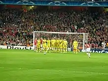 English sides Manchester United and Arsenal were involved in the first two quarter-final matches on 7 April. Arsenal were playing the first leg away against Villarreal from Spain, their second encounter in three years following on from a meeting in the semi-finals three years earlier. Villarreal went in front in the 10th minute thanks to a long-range effort from Marcos Senna. The Yellow Submarine went on to dominate the first half, but Arsenal did not concede again and their defensive work was rewarded in the 66th minute as a clipped ball from Arsenal captain Cesc Fàbregas was controlled on the chest by Emmanuel Adebayor and volleyed acrobatically with an overhead kick into the bottom corner. The match eventually finished 1–1, with Arsenal taking an away goal into the second leg.[25]