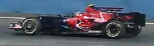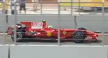 Three practice sessions were held before the Sunday race—two on Friday, and a third on Saturday. The Friday morning and afternoon sessions each lasted 90 minutes. The third session was held on Saturday morning and lasted an hour.[12] The very first practice session on the newly opened Valencia Street Circuit was held on a dusty and slippery track, but despite the drivers' relative unfamiliarity with the circuit there were no major incidents (though David Coulthard did hit the barriers late in the session).[13][14] Sébastien Bourdais went fastest early on, but it was his Toro Rosso teammate Sebastian Vettel who posted the quickest time of the session. Massa and Hamilton finished second and third, with Bourdais just behind them.[15] Following the session, the drivers and personnel observed a minute's silence for those killed in the plane crash in Madrid two days previously.[14][16] Kimi Räikkönen topped the timesheets in second practice, having traded fastest times with teammate Massa for the majority of the session.[17] Fernando Alonso had the set the quickest time late, but was surpassed by Räikkönen in his final flying lap.[18] A notable incident in the session involved Nico Rosberg spinning under brakes in the final corners, and narrowly missing Mark Webber on the inside, before rejoining the track with no damage done.[19] Surprsingly, usual back-runner Jenson Button, driving for Honda, finished third.[20] After the session, Fernando Alonso, driving for Renault, was reprimanded and fined €10,000, after crossing the pitlane entry line early on in the second session.[21] Rain overnight meant that the Valencia track began with almost no rubber on the surface, but Robert Kubica was still able to carry enough speed to become the first man of the weekend to break into the 1:38s, with Rosberg and Bourdais close behind.[22][23] There were minimal mishaps, with only Hamilton and Timo Glock spinning.[24] Jarno Trulli spent the majority of the session in the pits with gearbox problems, completing only two laps.[23][25]