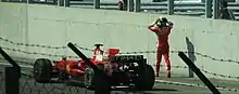 The podium finishers were overshadowed in the media by coverage of the ill fortune of both the weekend's pace-setters, Hamilton and Massa.[26] Massa in particular was praised for his performance. The Ferrari team principal, Stefano Domenicali, said it was, "the best race of his career. It was fantastic the way he managed the race."[31] Journalist Mark Hughes described it as "almost certainly his best race to date",[24] and colleague Simon Arron termed it as "one of the finest afternoons of his F1 career".[26] Both drew attention to his controlled aggression at the first corner of the race, followed by his relentless, mistake-free pace. Arron, in particular, noted that Massa's first-corner passing move was more typical of Hamilton's attacking style than his own, and was a "defining moment" in Massa's championship campaign.[22] Hamilton himself later expressed surprise that Massa had been able to overtake him in such a manner, and warned his rival that "it won't happen again".[32] Hughes described the Grand Prix as "a throwback race", in that the leaders had suffered from unreliability, and the winner had not been in contention on speed alone; It was a situation reminiscent of earlier times in the sport, when the cars were generally less reliable.[20]