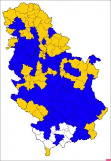 ![]() Results by countries (2nd round): Yellow - Boris Tadic, Blue - Tomislav Nikolic, Green - equal and gray - none. |