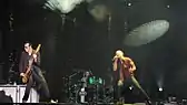 According to Dean DeLeo, steps toward a reunion started with a simple phone call from Weiland's then-wife, Mary Forsberg.[3] She would later invite the DeLeo brothers to play at a private beach party, which led to the reconciliation of Weiland and the DeLeo brothers.[3] In 2007 Dean DeLeo discussed with Weiland an offer from a concert promoter to headline several summer festivals.[4] Weiland accepted and said he had cleared the brief tour with his Velvet Revolver bandmates.[4] Weiland said "everything was cool. Then it wasn't", and stated that the rest of the band stopped talking to him.[4] As a result, Weiland announced in the middle of a Velvet Revolver show on March 21, 2008 in Glasgow that it would be his last performance with the group.[4]