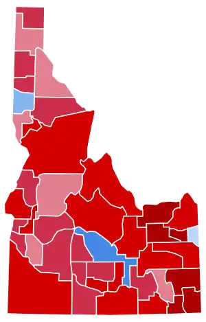 | Kootenai | 38,387 | 61.98% | 22,120 | 35.72% | 592 | 0.96% | 565 | 0.91% | 268 | 0.43% | 16,267 | 26.27% | 61,932 |