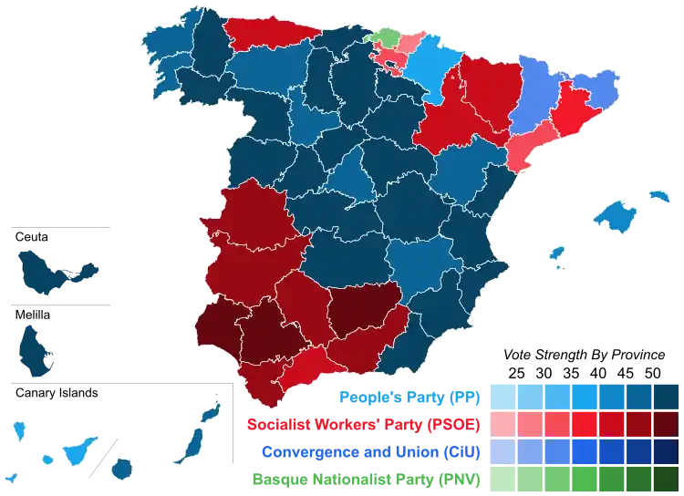- Results for Galeusca, not including the Balearic Islands and Galicia (4.18%), and CE in Andalusia, Balearic Islands and the Canary Islands (1.05%) in the 2004 election.