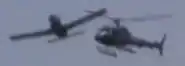 While heading south down river, the airplane was seen to be behind the sightseeing helicopter, which was going about half the speed of the airplane. The pilot of another helicopter (who was refueling at the heliport) saw the impending accident, and attempted to warn both the airborne helicopter and the plane by radio, but received no response. At 11:53:14 a.m., the Piper's left wing crashed into the Eurocopter, severing the left wing of the airplane and rotor blades from the helicopter.[13] Most witnesses reported the plane entering a nose dive while spiraling into the river, while the helicopter dropped into the water.[6] The collision occurred at approximately 1,100 feet (340 m) MSL altitude and was caught on tape by an Italian tourist.[14][15] Less than a minute after the collision occurred, the Teterboro controller contacted the Newark tower to inquire about the airplane, and was told that the airplane had not contacted Newark.[9]