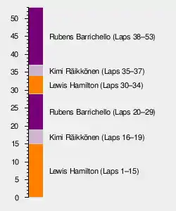 | 4 | 20 | Force India-Mercedes | 53 | +31.131 | 2 | 5 | |