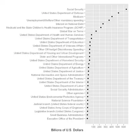 - "Summary Tables" (PDF). Fiscal Year 2011 Budget of the U.S. Government. United States Office of Management and Budget. Table S–4: Proposed Budget by Category. Retrieved March 14, 2015.