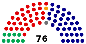 Last election 83 seats, 43.38% 65 seats, 41.95% 0 seats, 7.79%