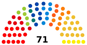 | Region | Seats won per party | Total seats | |||||||