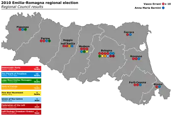 | Centre-left coalition | Democratic Party | 48.0 | 22 | Vasco Errani | ||