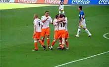 Blackpool, who had been considered candidates for relegation at the start of the season by some critics,[4] finished the campaign in sixth position to claim the final play-off place. They secured the spot with a 1–1 draw against Bristol City in their final league match.[5] With a total of 70 points, they finished a single point ahead of Swansea City who were held to a 0–0 draw with Doncaster Rovers in their final match.[6] Blackpool's opponents for the play-off semi-finals were third-placed Nottingham Forest, against whom the won the first leg 2–1 at Bloomfield Road. Having conceded a 13th-minute goal from Chris Cohen, Blackpool came from behind to win following a goal from Keith Southern and a penalty from Charlie Adam.[7]