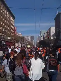 The Giants held a victory parade on November 3, following the same parade route that the team used when they moved to the city.[33] With some estimates of a million fans lining the route, the parade and rally at City Hall was the largest event ever in the city of San Francisco. Transit agency BART set an all-time single day record for ridership, breaking its previous record by almost 20%.[33]