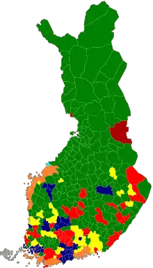 Parliamentary elections were held in Finland on 17 April 2011 after the termination of the previous parliamentary term. Advance voting, which included voting by Finnish expatriates, was held between 6 and 12 April with a turnout of 31.2%.[1][2]