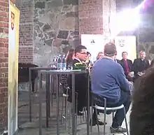 On 6 April, the television station MTV3 organised a debate for all the incumbent parties represented in the parliament. On the question of Finland's participation in NATO operations in Libya during the 2011 Libyan civil war, Soini, saying "Finland should not be taken into wars," was accompanied by the Left Alliance's leader Paavo Arhinmäki on disagreeing with the other party leaders' stance on supporting Finland's participation.[77][78] All the opposition parties criticised the government's tax policies which they claimed were aiming towards the establishment of a flat tax.[79] On the question of energy policy, the chairpersons of the NCP, True Finns and SPP were in favour of building more nuclear energy on the grounds of achieving energy self-sufficiency. Jyrki Katainen said that "we need to decide to either import nuclear energy from Russia or produce it ourselves" and Soini pointed out that the steel industry does not get along with mere wind energy,— while the leaders of the other five parties were against it, with some preferring instead to build more renewable energy infrastructure. Anni Sinnemäki of the Green League said that "not all renewable energy is expensive" and Urpilainen insisted that after the summer 2010 decisions to give licences for two nuclear plants,[80] a halt was needed for reconsideration in any decision to further nuclear projects.[78][81][82] Stefan Wallin of the SPP was the only party leader willing to force municipalities to take in the refugees allocated to them.[62]