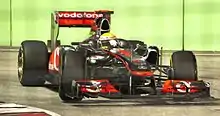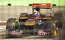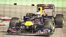 The 2011 Singapore Grand Prix, formally the 2011 Formula 1 SingTel Singapore Grand Prix, was a Formula One motor race that was held on 25 September 2011 at the Marina Bay Street Circuit in Singapore.[2] It was the fourteenth round of the 2011 Formula One season and the twelfth time the Singapore Grand Prix had been held. The 61-lap race was won by Red Bull Racing's Sebastian Vettel, the Drivers' Championship leader, after starting from pole position. Jenson Button finished in second place for McLaren, and Mark Webber completed the podium in third position.[3]