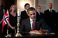 July 26: U.S. President Barack Obama signs the condolence book for a victims of the 2011 Norway attacks, during a visit to the Norwegian ambassador's residence in Washington, D.C.