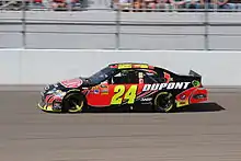 Forty-four cars were entered for qualifying, but only forty-three would race because of NASCAR's qualifying procedure.[15] Gordon clinched the seventy-first pole position of his career with a time of 49.973 seconds, the only qualifying lap under 50 seconds.[3][16] Gordon qualified differently from most of the other drivers, hoping to keep his engine cool through the qualifying laps.[16] A. J. Allmendinger qualified 0.135 seconds behind and joined Gordon on the front row of the grid.[3] Marcos Ambrose took third place, ahead of Almirola and Kahne in the fourth and fifth positions.[3] Championship leader, Biffle qualified sixth, while Edwards followed in seventh.[3] Stewart, Waltrip and Kenseth completed the first ten positions.[3] J. J. Yeley failed to qualify for the race after positing a time of 51.402 seconds.[3]