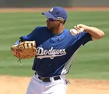 The Dodgers re-signed outfielder Juan Rivera to a one-year contract with a 2013 option.[16] They filled two of their open spots in rapid succession on November 15 by signing second baseman Mark Ellis to a two-year contract[17] and backup catcher Matt Treanor to a one-year contract.[18] The Dodgers signed infielder Adam Kennedy to a one-year contract on December 1 to provide some infield depth[19] and they signed veteran starting pitcher Chris Capuano to a two-year contract on December 2 to fill the void left by Kuroda's departure.[20] They added to their bench on December 5 by signing veteran utility player Jerry Hairston, Jr. to a 2-year contract.[21] The Dodgers finished their rebuilding of the rotation on December 8 by signing Aaron Harang to a 2-year contract, with a vesting option.[22] The Dodgers chose to re-sign relief pitcher Mike MacDougal, agreeing to a one-year contract (including a 2013 option) with him on January 5.[23] They added another relief pitcher on February 3 by signing veteran Todd Coffey to a one-year contract.[24]