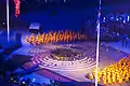 For the closing ceremony, the operation of the cauldron was played in reverse: it opened out until flat on the ground, and the flames in the petals extinguished one by one.