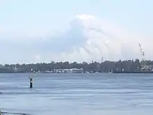 Another fire ignited in coal tailings from local mining operations near Ruttleys Rd., Doyalson, during September; the hot-spots were observed by the RFS several weeks before, but could not be extinguished before hot conditions on 17 October.[47] The fire would eventually burn over 2,600 ha (6,400 acres) and impact property in Cams Wharf, Catherine Hill Bay, Lake Munmorah and Nords Wharf, destroying 4 houses and damaging a further 7.[3][48] 63-year-old retiree Walter Linder died of a suspected heart-attack while defending his home during the fire.[49]