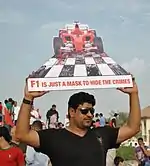 In the context of the ongoing Bahraini uprising, public protests also occurred over the 2013 staging of the race, after the 2011 event was cancelled and the 2012 event went ahead despite efforts by demonstrators to disrupt the race.[11] According to Reuters, the race went ahead "largely unhindered" by the protests. Reflecting on the changes in the government strategy compared to 2012, they concluded that the public relations battle over this year's race had produced a stalemate, reflecting the situation in the opposition movement generally.[12]