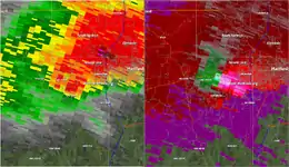 ![]() Radar imagery of the supercell that produced the Hattiesburg tornado. | |
