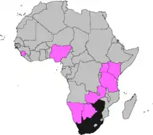 The top seven teams at the eight-team 2010 Division One tournament qualified directly for the 2013 Division One Tournament. The last-placed team, Tanzania, was relegated to the 2013 Division Two tournament, played in Benoni, South Africa, in March 2013.[1] The Division Two tournament was won by Ghana, but that side was unable to attend the Division One tournament, with runner-up Tanzania taking their place.[2]