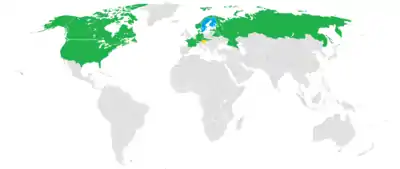 ![]() Participating nations of 2013 IIHF World Championship. Blue = hosts. Green = top 14 nation from WC 2012. Yellow = promoted from Division 1.