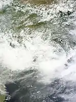 Early in the storm's existence, it brought flooding rains to much of northwestern Indonesia, resulting in significant damage. At least four people died and six others were reported missing.[12][13] In preparation for the storm, large-scale evacuations were recommended for parts of Myanmar. This resulted with people overcrowding boats to escape, and one or several vessels capsized, causing at least 39 deaths; 42 people were rescued while 19 others were unaccounted for and feared dead.[14][15] The storm's expansive cloud mass also brought unsettled weather to Sri Lanka, Thailand, and southeastern India. Severe storms in India and Sri Lanka were responsible for at least 16 fatalities and significant damage;[16][17] one person died in Thailand.[18] Striking Bangladesh in a weaker state than initially expected, damage was moderate to severe. A total of 95,003 poorly constructed huts were damaged or destroyed, 17 people died, and nearly 1.3 million were affected across the country.[19][20] Losses to crops exceeded ৳2.75 billion (US$35.3 million).[21] Myanmar was spared damage and further casualties.[22]