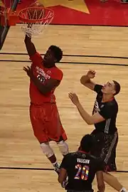 Duke brought in a recruiting class of four players to join the 2014-15 roster. Guard Grayson Allen was the first to commit, doing so soon after his junior season at Providence School.[22] Throughout the summer of 2013, much of Duke's recruiting efforts were focused on point guard Tyus Jones and Center Jahlil Okafor. Both were consensus top 10 recruits in the class of 2014, with Okafor being named the number one prospect by many major recruiting services.[23] The pair had long been rumored to be planning on committing to the same college in spite of living hundreds of miles apart and the rarity of package deals coming to fruition.[24] That November, the rumors were confirmed when the pair announced their decision during concurrent press conferences.[25] Only a week later, 5-star small forward Justise Winslow announced that he would join the Blue Devils as well.[26] Winslow's commitment gave Duke the number 1 recruiting class of 2014 according to the major recruiting services, the first school other than Kentucky to be ranked #1 in six years.[27] In the spring, all four players were named to the McDonald's All-America team with Allen winning the dunk contest, Jones capturing the skills competition and Okafor earning co-MVP honors for the game.[28] Over the summer of 2014, Duke also added Sean Obi, a transfer from Rice, though he would redshirt during the 2014–15 season due to NCAA rules.[29]