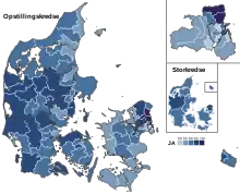 The Danish referendum on joining the Unified Patent Court was a referendum held in Denmark on 25 May 2014 alongside the European Parliament elections.[1] The referendum was approved with 62.5% of the vote, enabling the government to proceed with the ratification of the Agreement on a Unified Patent Court, which constitutes the legal basis for the Unified Patent Court.[2] The court is to be common to several Member States of the European Union for proceedings regarding European patents. Ratification of the agreement, which had already been approved by a simple majority of the Danish parliament, will also render the unitary patent applicable in Denmark.
