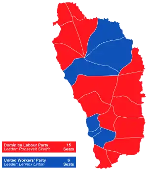 All 21 seats in the Dominica House of Assembly 11 seats needed for a majority | |||||||||||||||||||||||||||||||