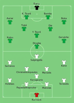 The two teams had never met before.[18] Greece midfielder Kostas Katsouranis (red card in previous match) and Ivory Coast defender Didier Zokora (accumulation of yellow cards) were suspended for the match.[23][24]